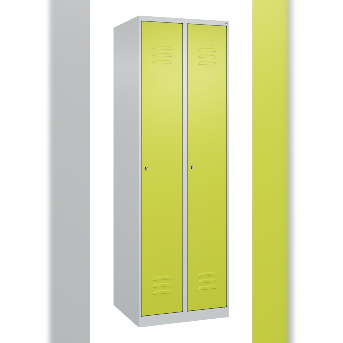 C+P Spind Classic PLUS, 2 Abteile, HxBxT 185x60x50cm, Zylinderschloss, Hellgrau/Clowngrün von PROREGAL