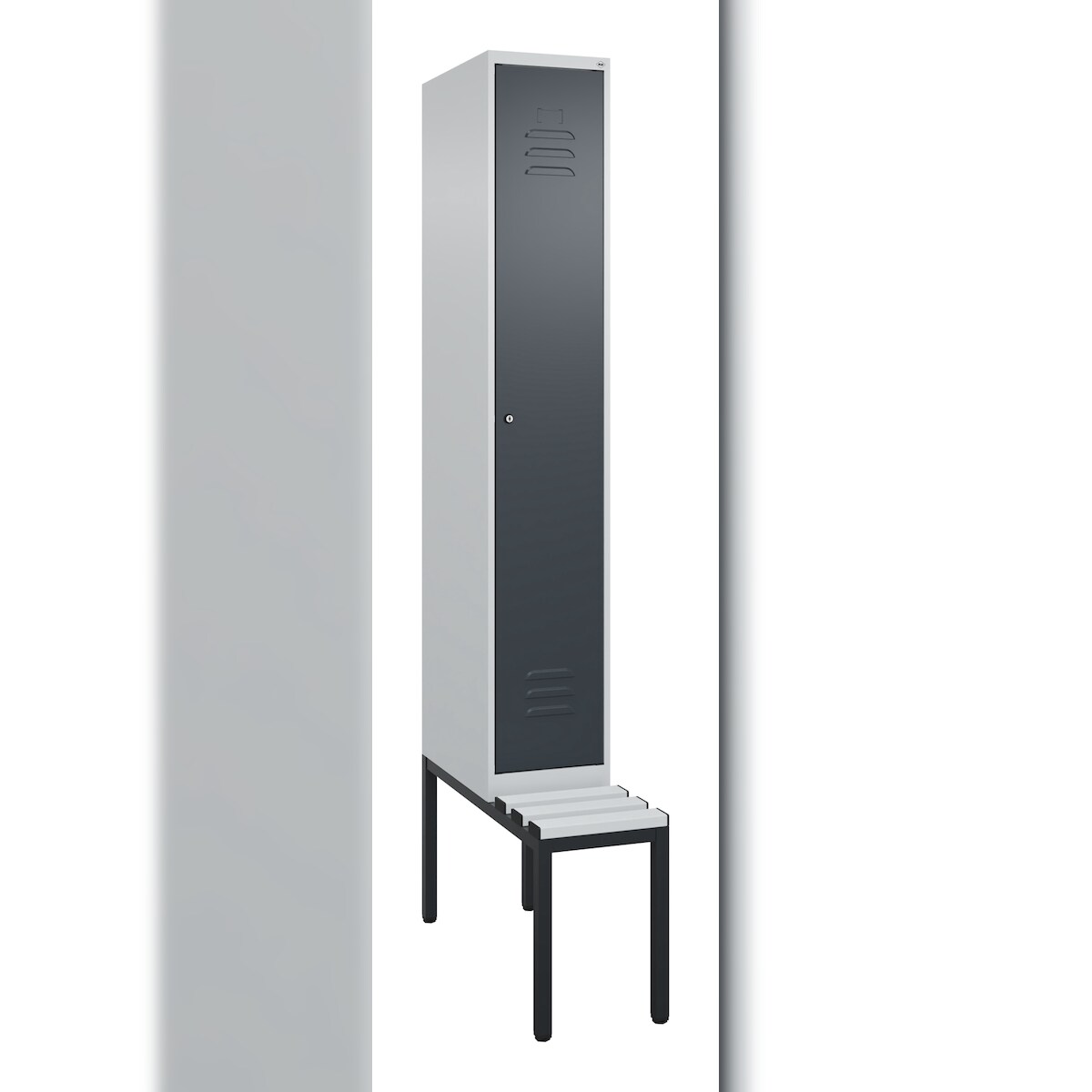 C+P Spind Classic PLUS, Kunststoff untergebaute Sitzbank, 1 Abteil, HxBxT 212x30x82cm, Zylinderschloss, Hellgrau/Anthrazit von PROREGAL