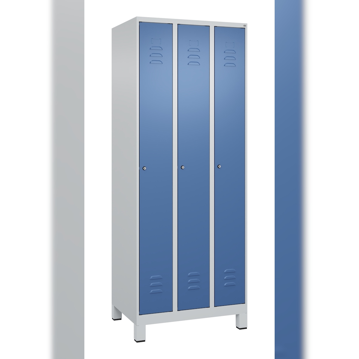C+P Spind Classic PLUS, Füßen, 3 Abteile, HxBxT 195x75x50cm, Zylinderschloss, Hellgrau/Fernblau von PROREGAL