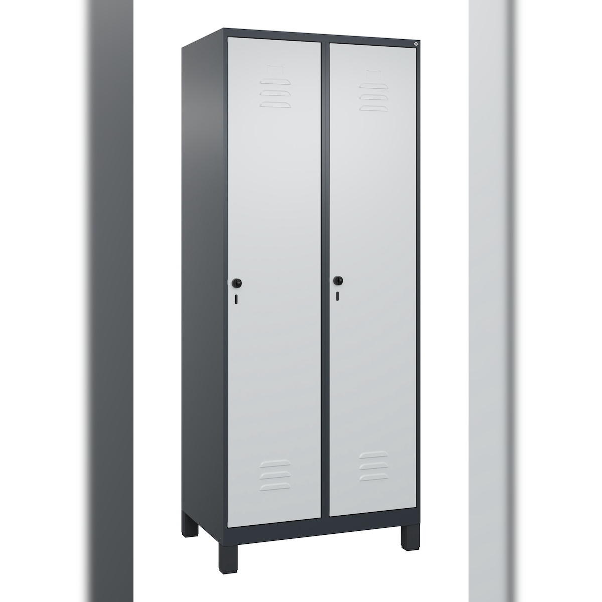 C+P Spind Classic PLUS, Füßen, 2 Abteile, HxBxT 195x80x50cm, Sicherheitsdrehriegel, Anthrazit/Hellgrau von PROREGAL