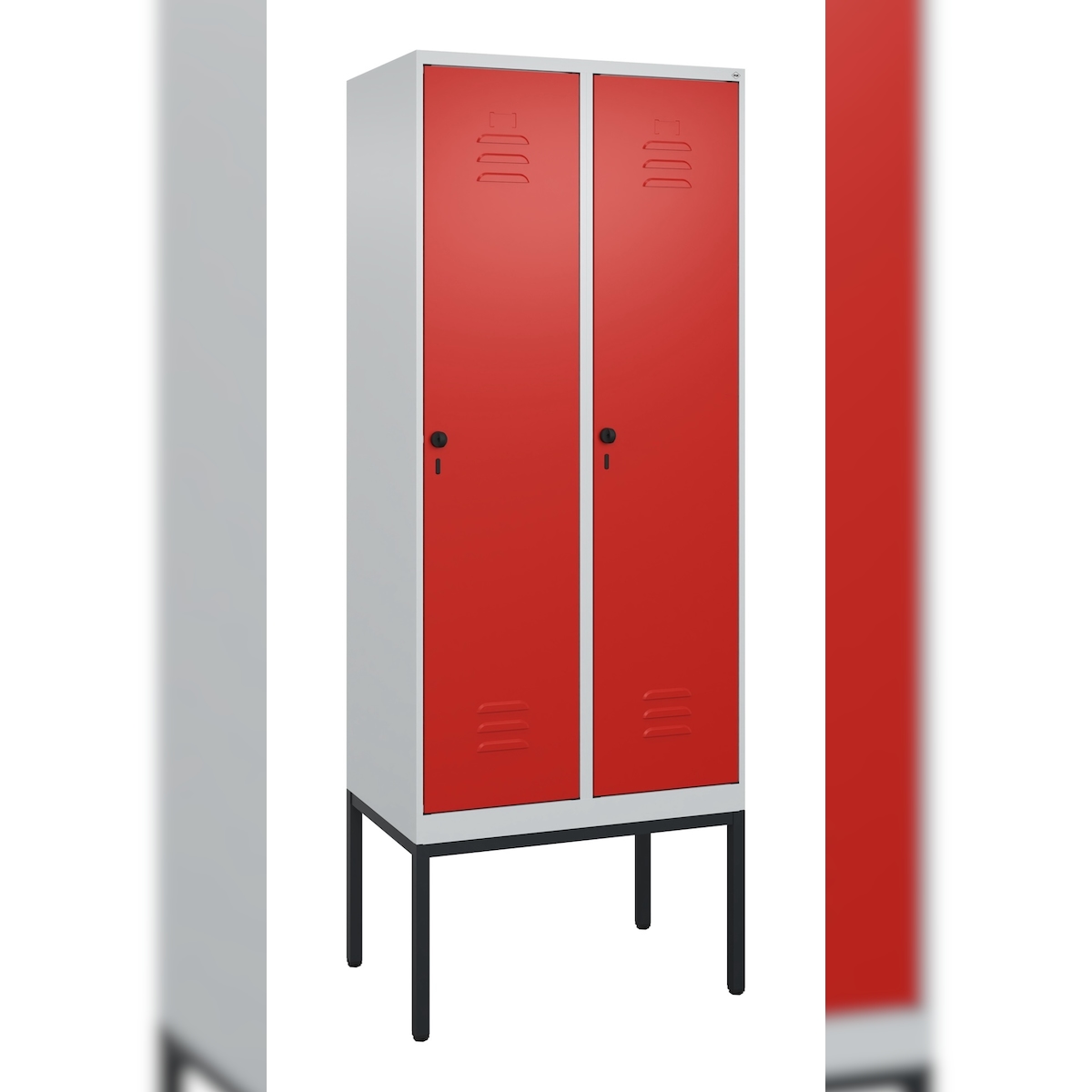 C+P Spind Classic PLUS, Füßen, 1 Abteil, HxBxT 195x40x50cm, Zylinderschloss, Hellgrau/Rot von PROREGAL