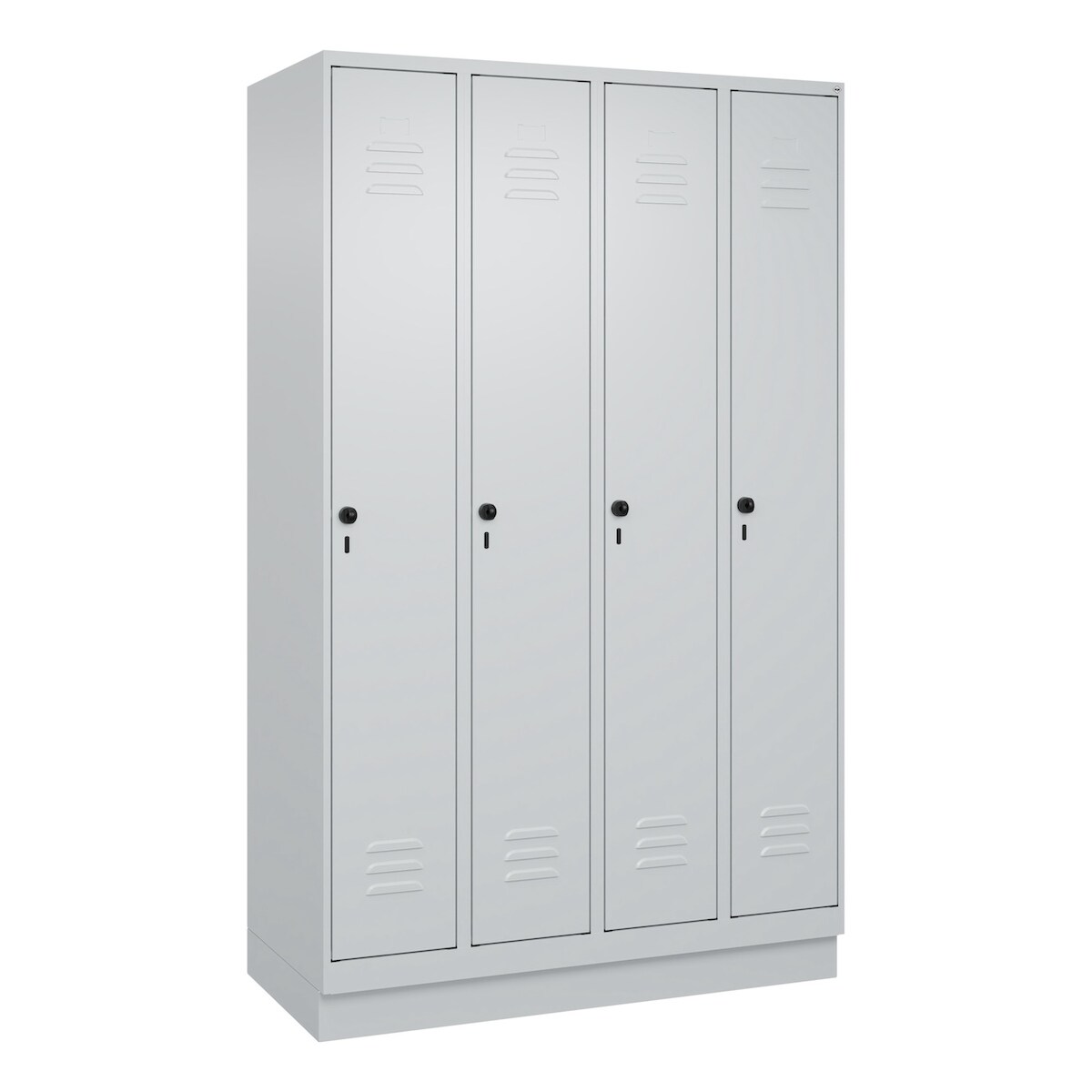 C+P Spind Classic PLUS, Sockel, 4 Abteile, HxBxT 195x120x50cm, Sicherheitsdrehriegel, Hellgrau/Hellgrau von PROREGAL