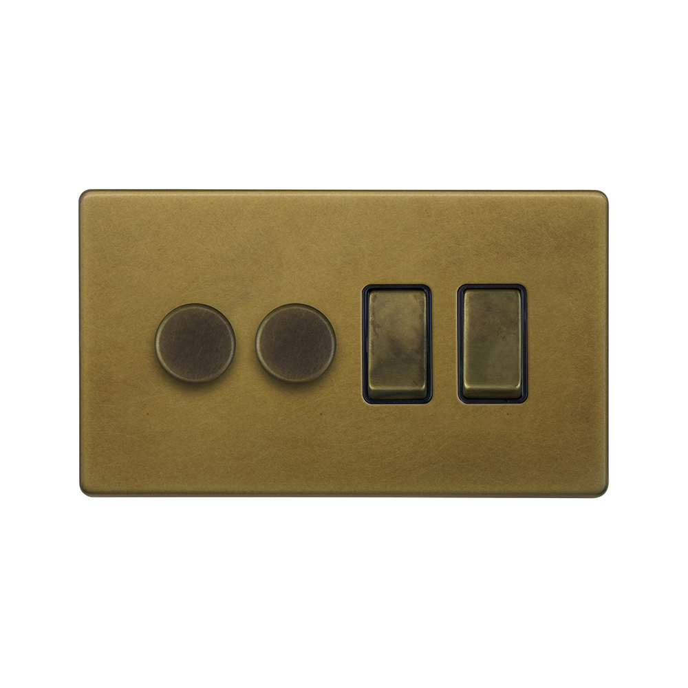 Soho Lighting Old Brass 4 Gang Dimmer and Rocker Switch Combo (2 x 2-Way intelligent Dimmer & 2 x 2-Way Switch)