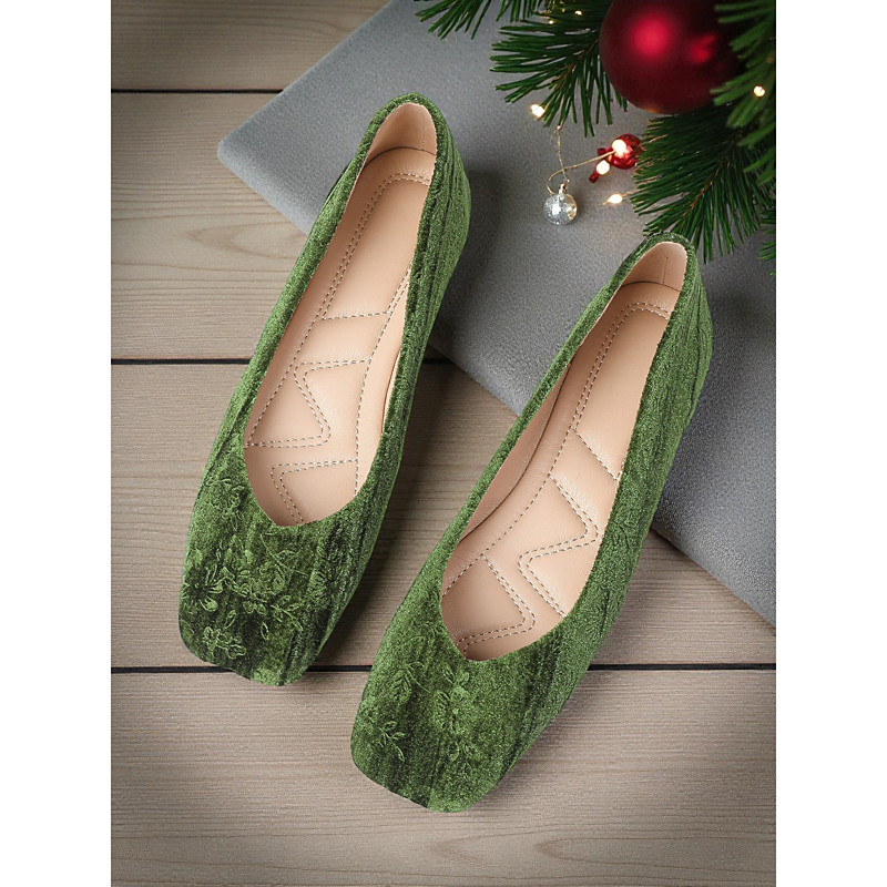 Women's Red Velvet Flats – Elegant Square Toe Slip-On Shoes for Christmas Parties, Holiday Gatherings and Formal Occasions