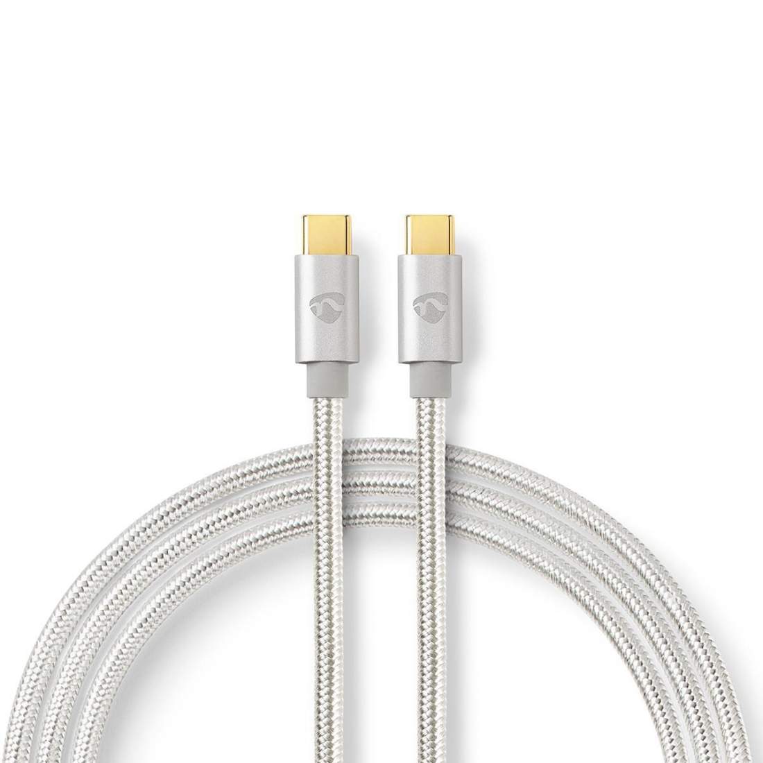 USB kaapeli | USB 2.0 | USB-C™ Uros | USB-C™ Uros | 100 W | 480 Mbps | Kullattu | 1.00 m | Pyöreä | Nailon / Punottu | Hopea | L