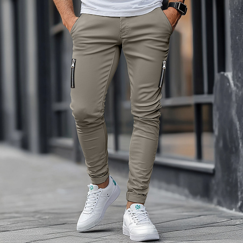 Men's Trousers Chinos Summer Pants Casual Pants Zipper Plain Comfort Breathable Full Length Casual Daily Holiday Fashion Basic Black Khaki Micro-elastic