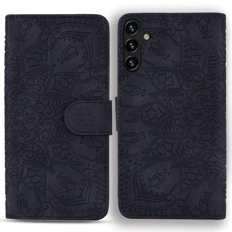 Mobilskal till Samsung Galaxy A55 5G KonstLäder Blommönster - Svart
