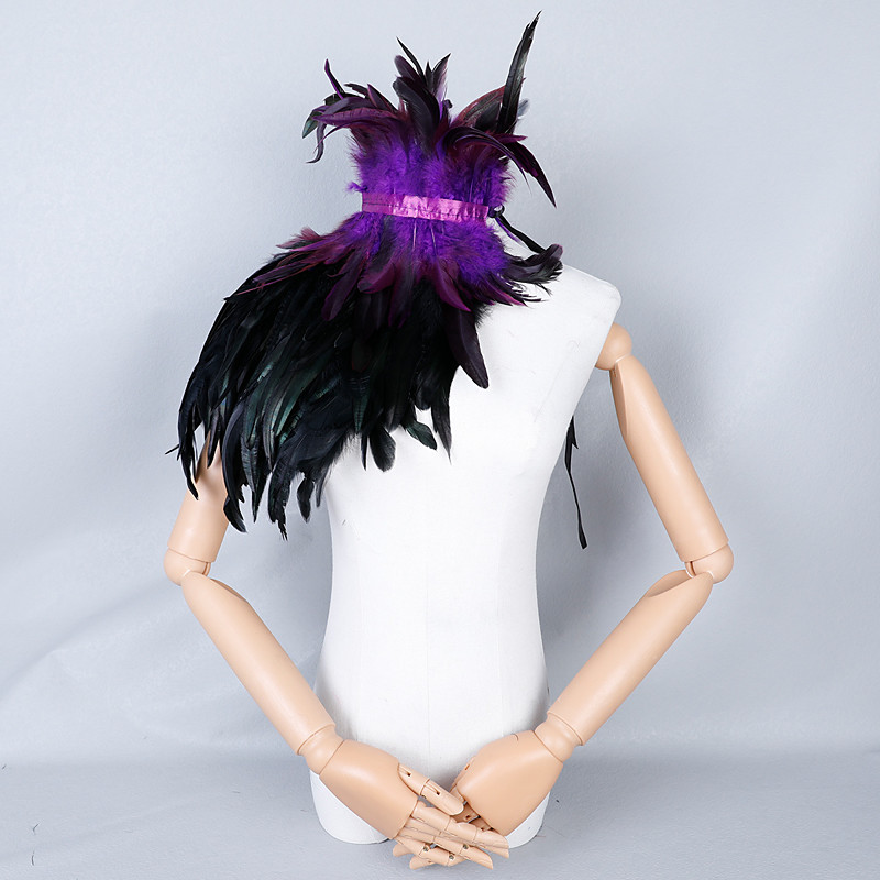 Women's White Feather Cape Shawl with High Collar, Gothic Angel Costume Accessories, Snow Queen Ice Witch Cosplay Shrug