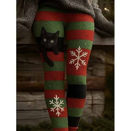 Per donna Leggings Vacanza Vintage Stile Etnico Lunghezza intera Vita AltaPantsNatale Grafico Plaid Gatto Stampa 3D Asciugatura Rapida Traspirabilità Morbido Elasticizzato All'aperto Casa Casual Nero