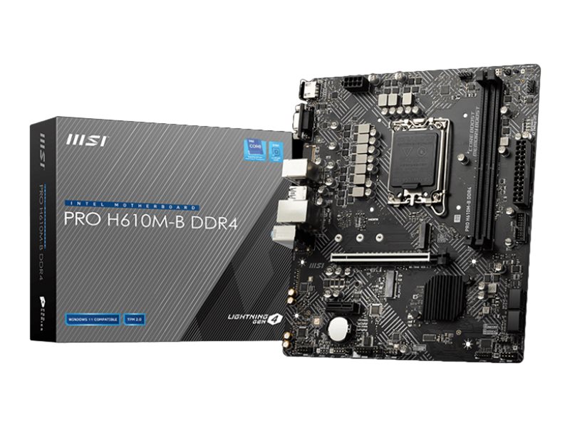 MSI PRO H610M-G DDR4 - Bundkort - micro ATX - LGA1700 sokkel - H610 Chipset - USB 3.2 Gen 1 - Gigabit LAN - onboard grafik (CPU påkrævet) - HD Audio (8-kanaler)