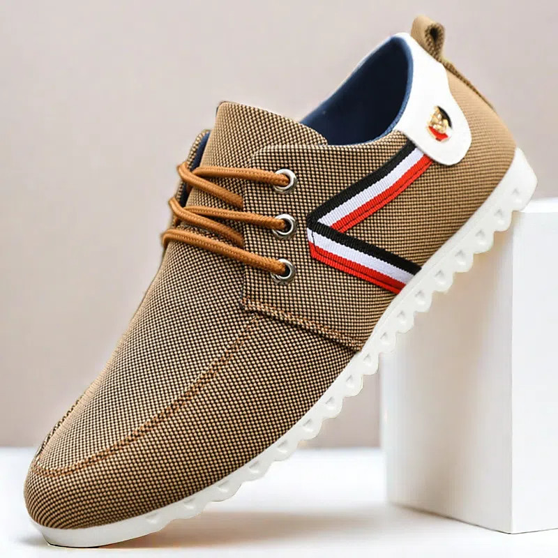 Men's Tan and Navy Casual Sneakers – Breathable Nylon Lace-Up Shoes for Weekend Wear and Travel