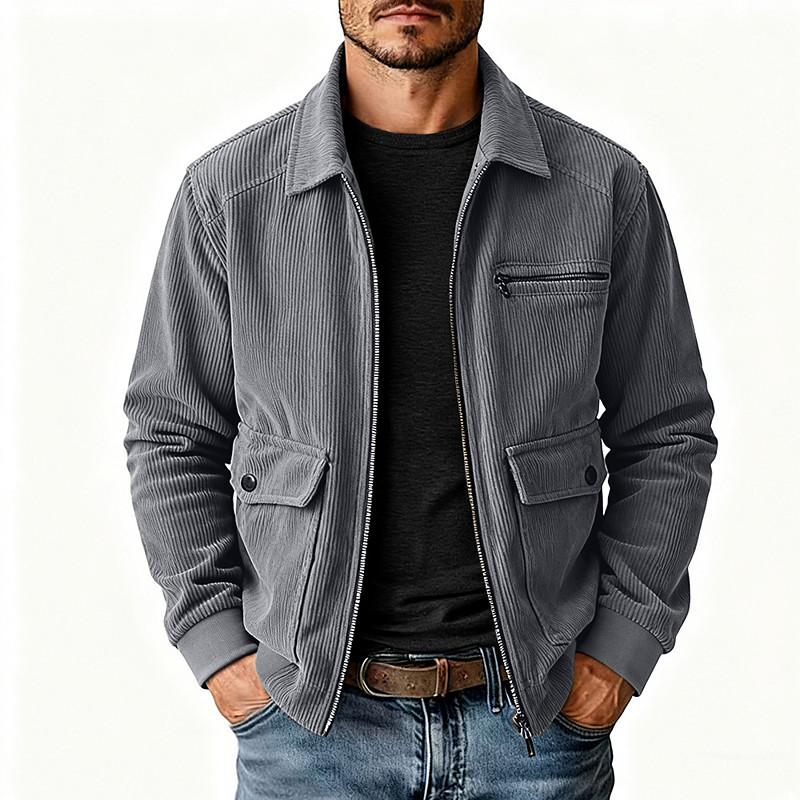 Men's Lightweight Jacket Corduroy Jacket Casual Jacket Work Jacket Vacation Casual Breathable Pocket Spring Fall Winter Plain Fashion Classic Lapel Regular Black Khaki Army Green Gray Jacket