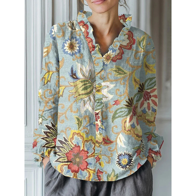 Women's Shirt Button Down Tunic Shirt Collar Long Sleeve Floral Graphic Vintage Tropical Daily Regular Tops Work Daily Holiday s Print Red Blue Green Spring Fall