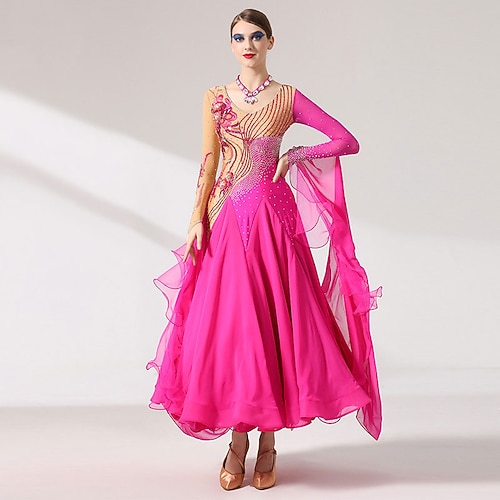Balli da sala Abito A fantasia Cristalli / Strass Per donna Prestazioni Feste Manica lunga Retato Elastene Organza