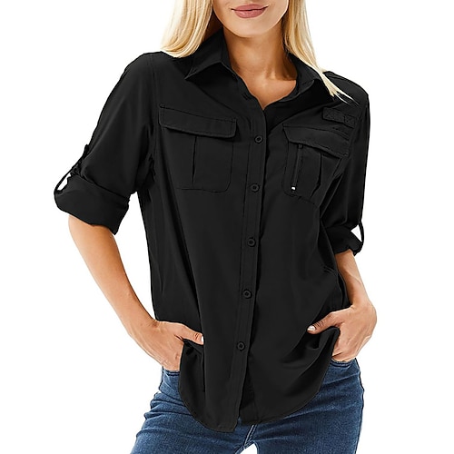 Per donna Blusa Semplice Casual Manica Lunga Colletto a Camicia Top Regolari Quotidiano Ferie Uscire Tasca Bottoni Nero Bianco Verde chiaro Rosa Azzurro cielo Estate Primavera