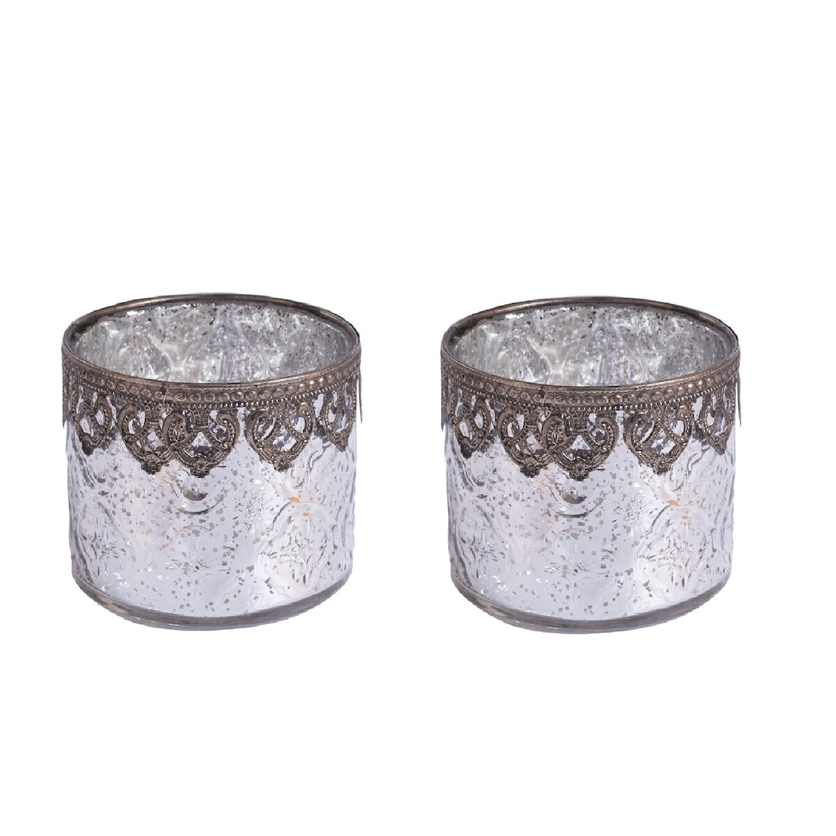 H&D Manufaktur Jinfa 2er Set Windlichter in Silber Zylinderform Ø 10 cm, Höhe 8,5cm