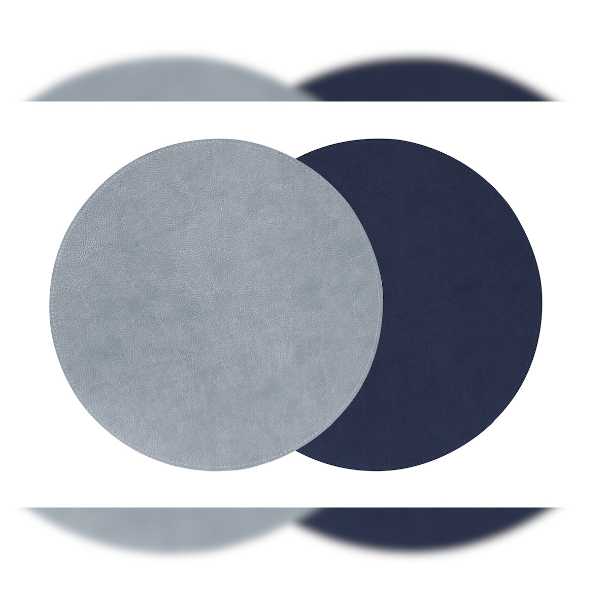 Stil Casa, 12er Set bicolor Tischsets, gekoppeltes Polyurethan, Ø 20 cm, Dollar-Finish in Hellblau/Blau.