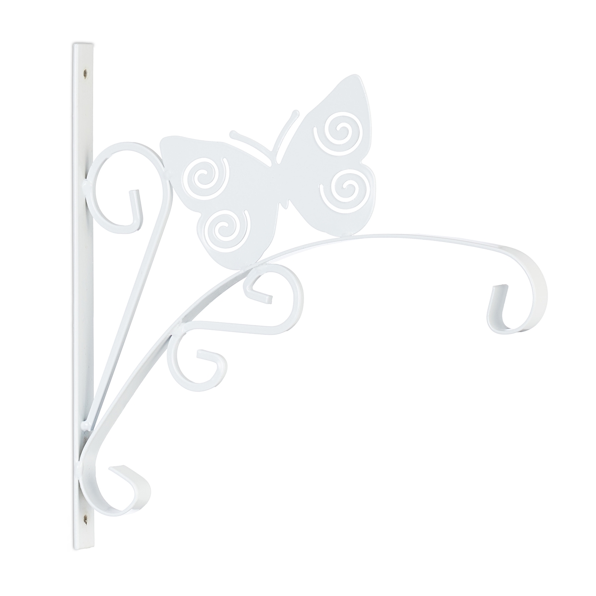 Relaxdays Blumenampel Halterung, 2er Set, Schmetterling, Wand, HBT: 30x30x2 cm, Ampelhaken außen & innen, Eisen, weiß