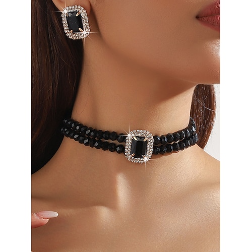 Damen-Choker aus Champagnerkristall Set aus Ohrsteckern, herzförmiger Strassschmuck, eleganter, romantischer Stil für ein Date am Valentinstag