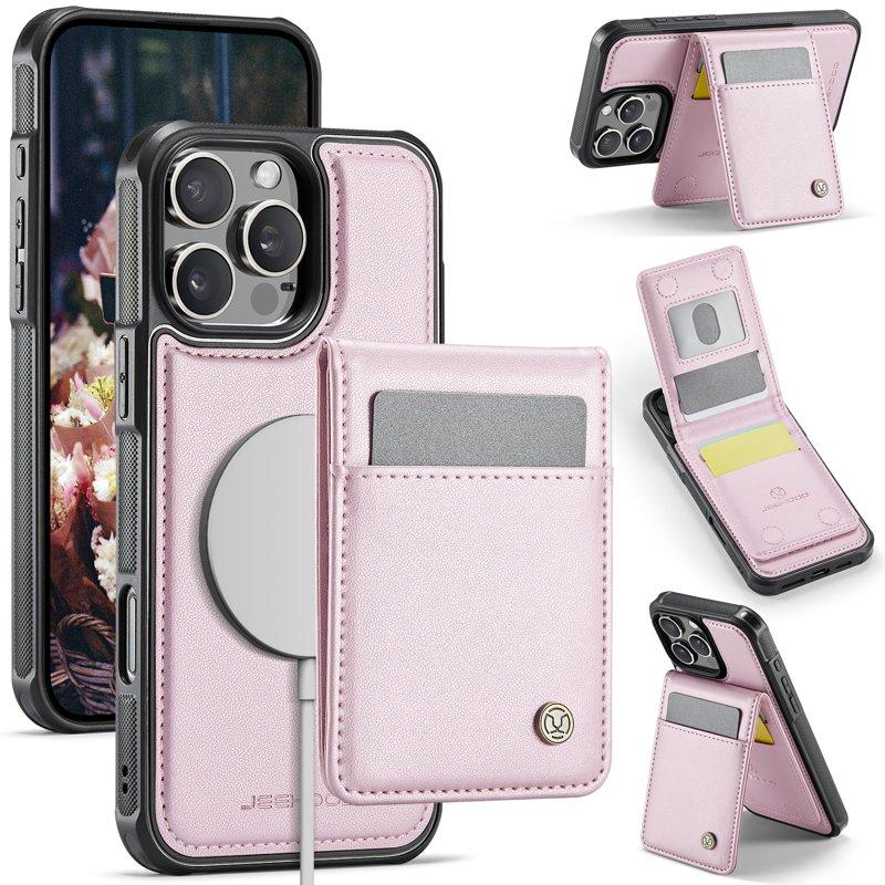 JEEHOOD J06 Mobilskal till iPhone 15 Pro MagSafe med Kortfack - Rosa