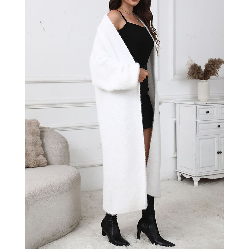 Women's Sweater Cardigan Elegant Fashion Streetwear Solid Color Open Front Knitted Long Sleeve Long Tops Knit Daily Holiday Going out Blue Black Fall Winter