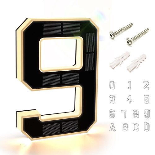 Luce solare da parete per esterni da 9 pollici, impermeabile IP44, luce a LED con numero civico per giardino, veranda, villa, strada, targa con numero civico illuminata, luce decorativa da parete per