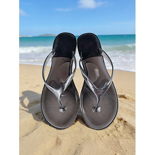 Wasserdichte schwarze Jelly-Flip-Flops für Damen – leichte, transparente Riemchensandalen für Strandurlaube und Spaziergänge am Meer Sommerurlaub auf Inseln