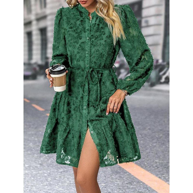Women's Midi Dress Black Dress Cocktail Dress Formal Dress Plain Dress Vintage Casual Street Date Regular Fit Plain Long Sleeve Shirt Collar Black White Green Summer Spring Fall