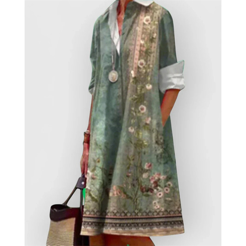 Women's Midi Dress Casual Dress Swing Dress Elegant Fashion Outdoor Daily Weekend Regular Fit Floral Long Sleeve Crew Neck Yellow Blue Green Spring Fall Winter Autumn