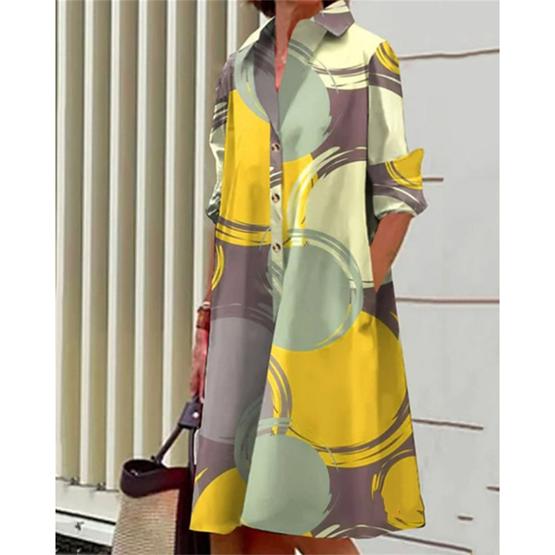 Women's Midi Dress Shirt Dress Casual Dress Fashion Modern Daily Beach Weekend Regular Fit Flower Long Sleeve Shirt Collar White Yellow Pink Navy Blue Spring Fall