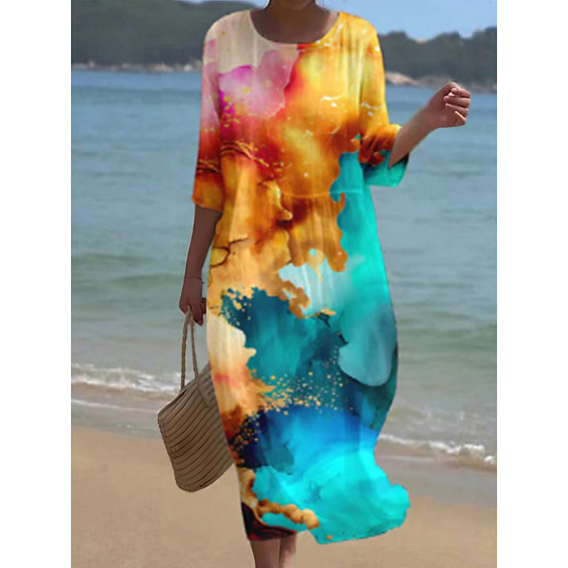 Women's Midi Dress Casual Dress Print Dress Fashion Modern Daily Beach Weekend Regular Fit Color Gradient 3/4 Length Sleeve Crew Neck Yellow Blue Orange Green Spring Fall Autumn