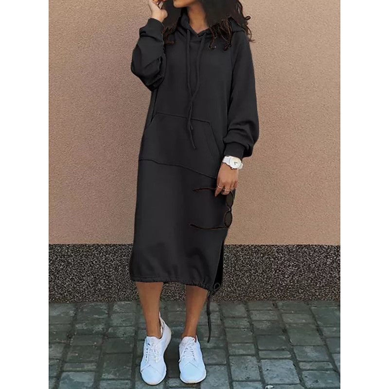 Women's Hoodie Dress Midi Dress Shift Dress Casual Outdoor Weekend Regular Fit Solid Color Long Sleeve Hoodie Black Pink Blue Fuchsia Spring Fall Winter