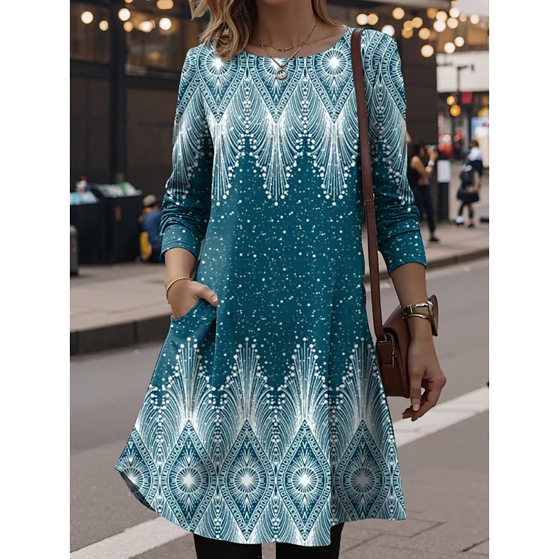 Women's Mini Dress T Shirt Dress Tee Dress Shift Dress Summer Dress Vacation Casual Party Daily Regular Fit Graphic Geometric Long Sleeve Crew Neck Pink Blue Purple Green Spring Fall Winter