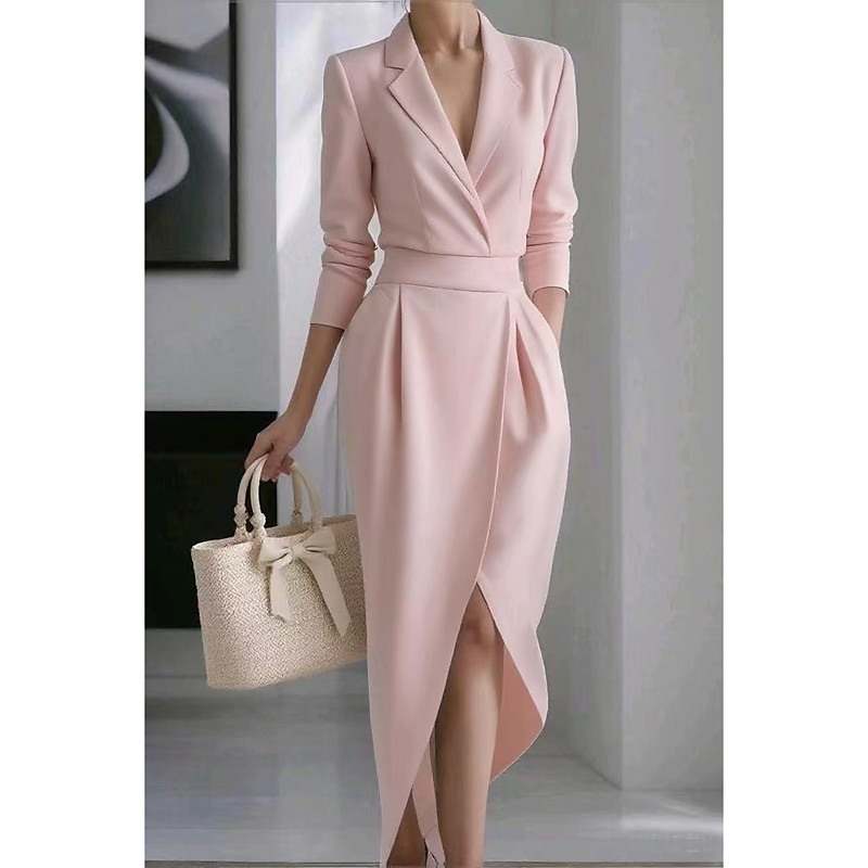 Women's Pink Blue Apricot Spring Fall Midi Dress Sheath Dress Birthday Formal Cocktail Puff Balloon Sleeve Formal Party Business Regular Fit Plain Stand Collar