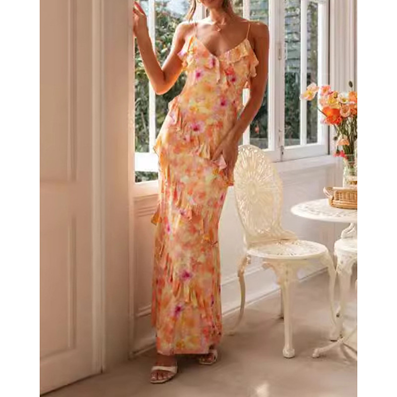 Women's Long Dress Maxi Dress Casual Dress Floral Dress Fashion Elegant Dress Outdoor Party Holiday Regular Fit Flower Sleeveless V Neck Yellow Pink Orange Summer