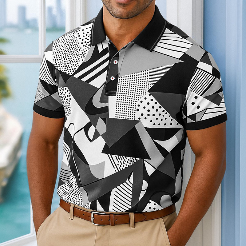 Men's Polo Casual Turndown Short Sleeve Geometric Abstract Buttons Summer Regular Fit Black Multicolor Orange Green Polo