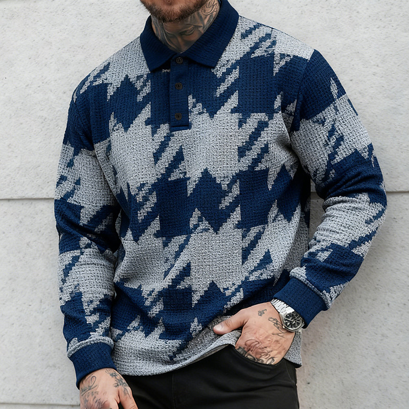 Men's Geometic Waffle Polo Shirts Rugby Polo Textured Long Sleeve Polo Shirts Lapel Sportswear Casual School Athleisure Daily Wear 3D Print Spring Fall Winter Blue Black Red
