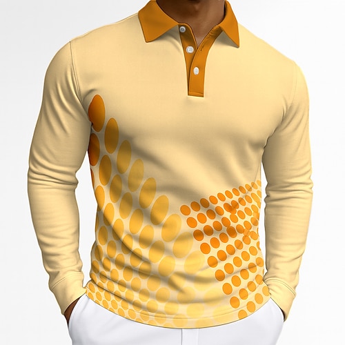 Men's Geometric Golf Polo Sports Polo Shirts Long Sleeve Polo Shirts Collared Shirts Casual Sports 3D Print Spring Fall Black Blue Purple