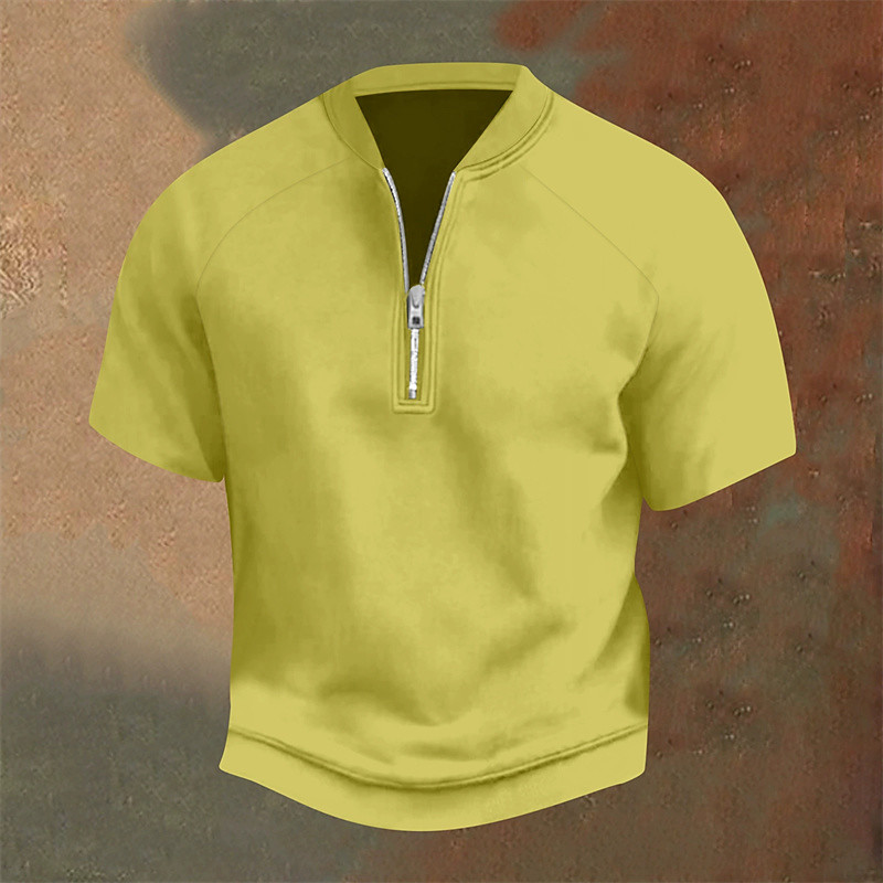 Men's Polo Shirts Quarter Zip Polo Daily Wear Date Quarter Zip Short Sleeve Fashion Basic Plain Zipper Summer Regular Fit Light Yellow Black Yellow Navy Blue Purple Orange Polo Shirts
