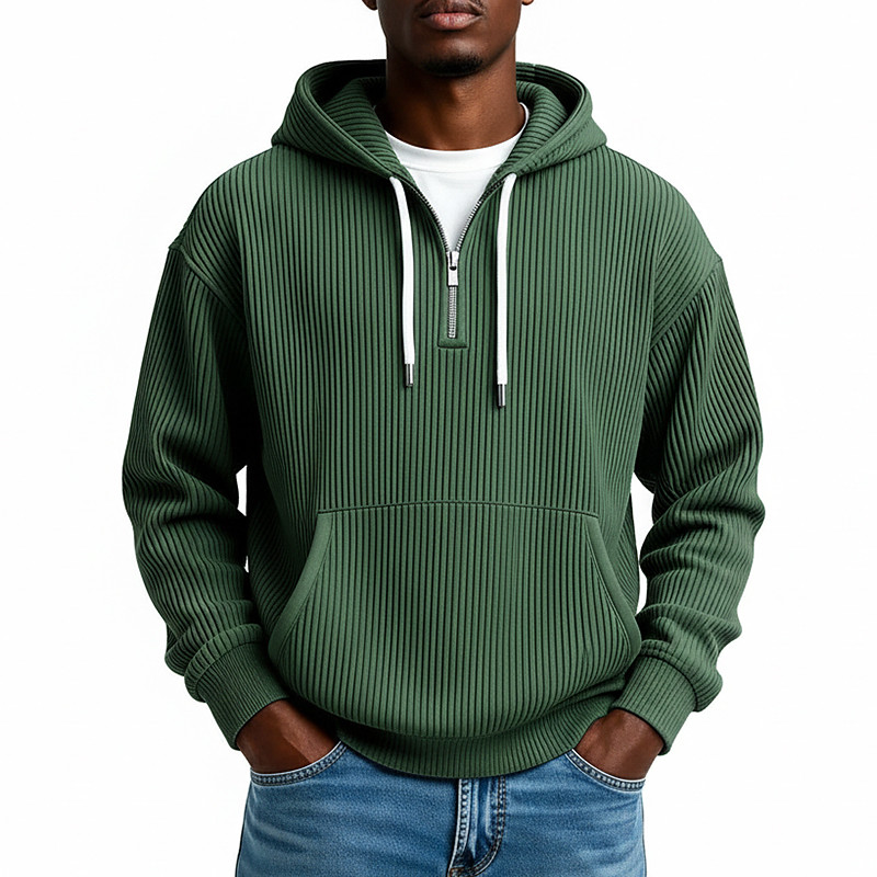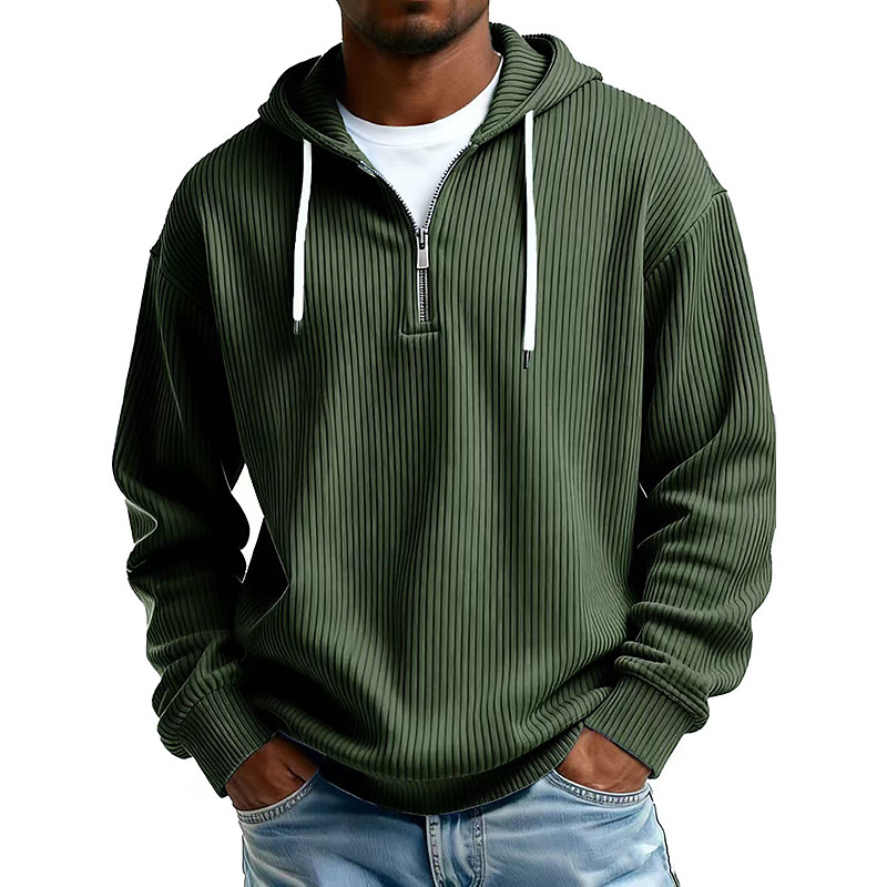 Men's Hoodie Corduroy Pullover Hoodie Sweatshirt Quarter Zip Hoodie Apricot Wine Red Black White Light Green Hooded Plain Zipper Textured Sports Outdoor Casual Daily Streetwear Cool Sportswear All