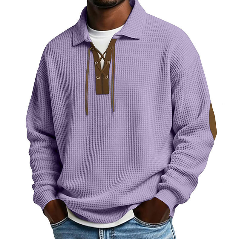 Men's Waffle Polo Shirts Polo Shirts Casual Street Lapel Long Sleeve Basic Modern Plain Lace up Spring Fall Regular Fit Black White Light Green Wine Navy Blue Purple Waffle Polo Shirts
