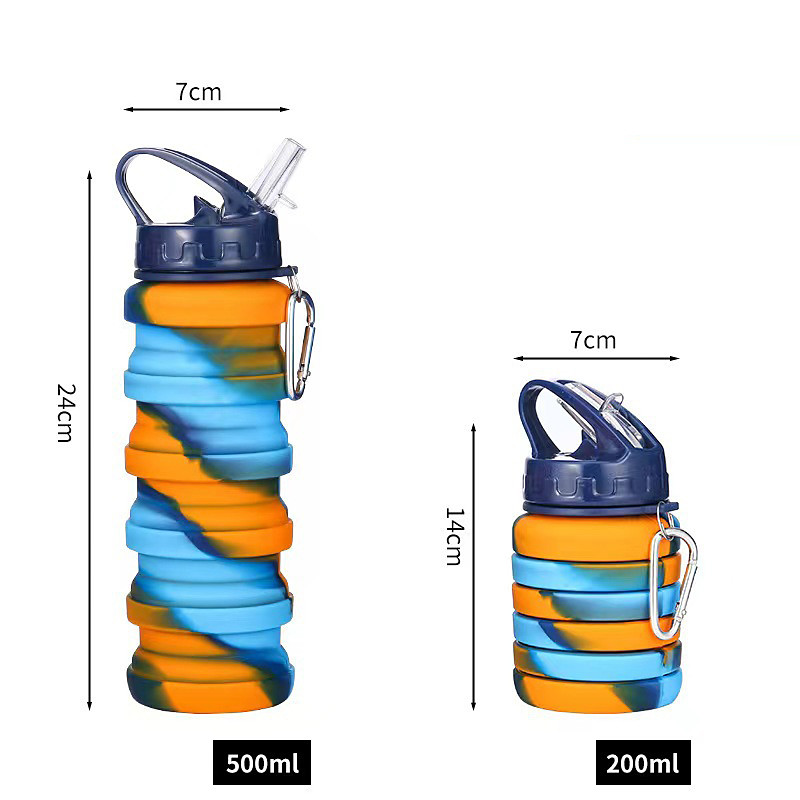 Collapsible Silicone Water Bottle - Leakproof, BPA-Free Space Saving for Hiking Travel