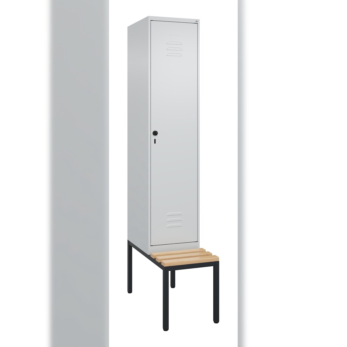 C+P Spind Classic PLUS, Buche untergebaute Sitzbank 1 Abteil, HxBxT 212x40x82cm, Sicherheitsdrehriegel, Hellgrau/Hellgrau von PROREGAL