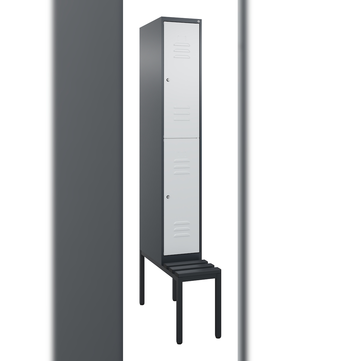 C+P Spind Classic PLUS, Kunststoff untergebaute Sitzbank, 2 Abteile, HxBxT 212x30x82cm, Zylinderschloss, Anthrazit/Hellgrau von PROREGAL