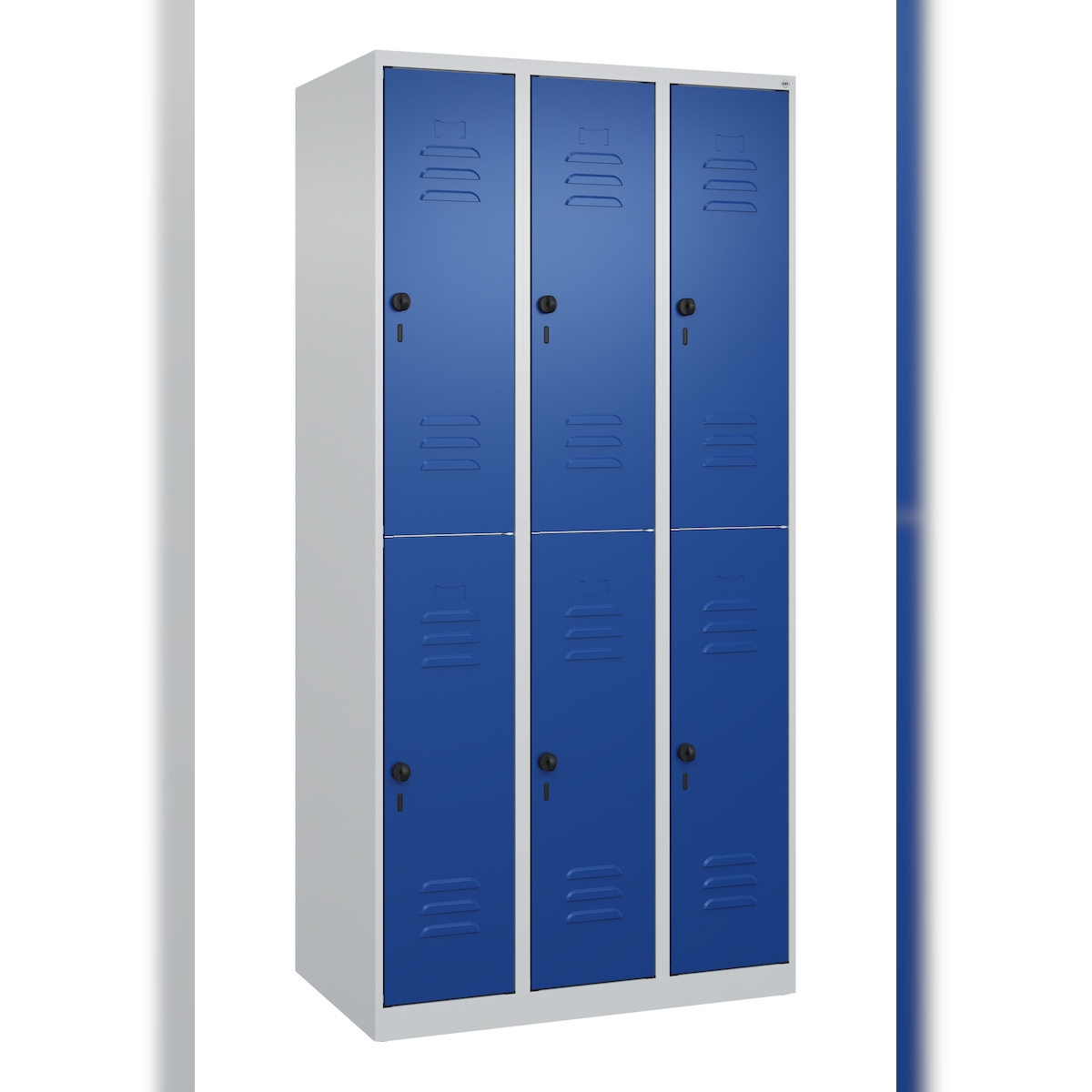 C+P Spind Classic PLUS, 6 Abteile, HxBxT 185x90x50cm, Sicherheitsdrehriegel, Hellgrau/Enzianblau von PROREGAL