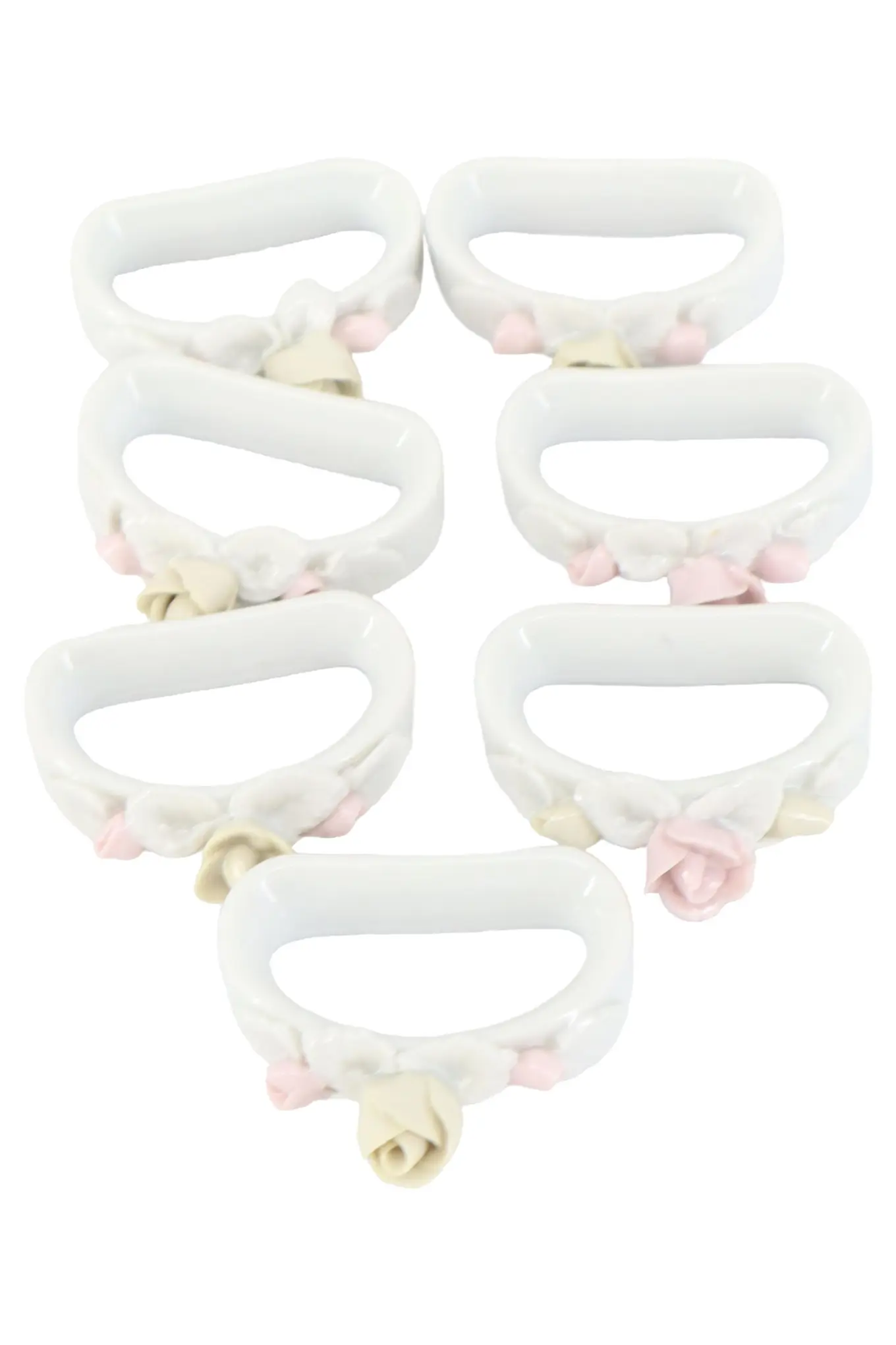 ALKA Serviettenring Porzellan Pflanzenmuster 7 Teile Weiß