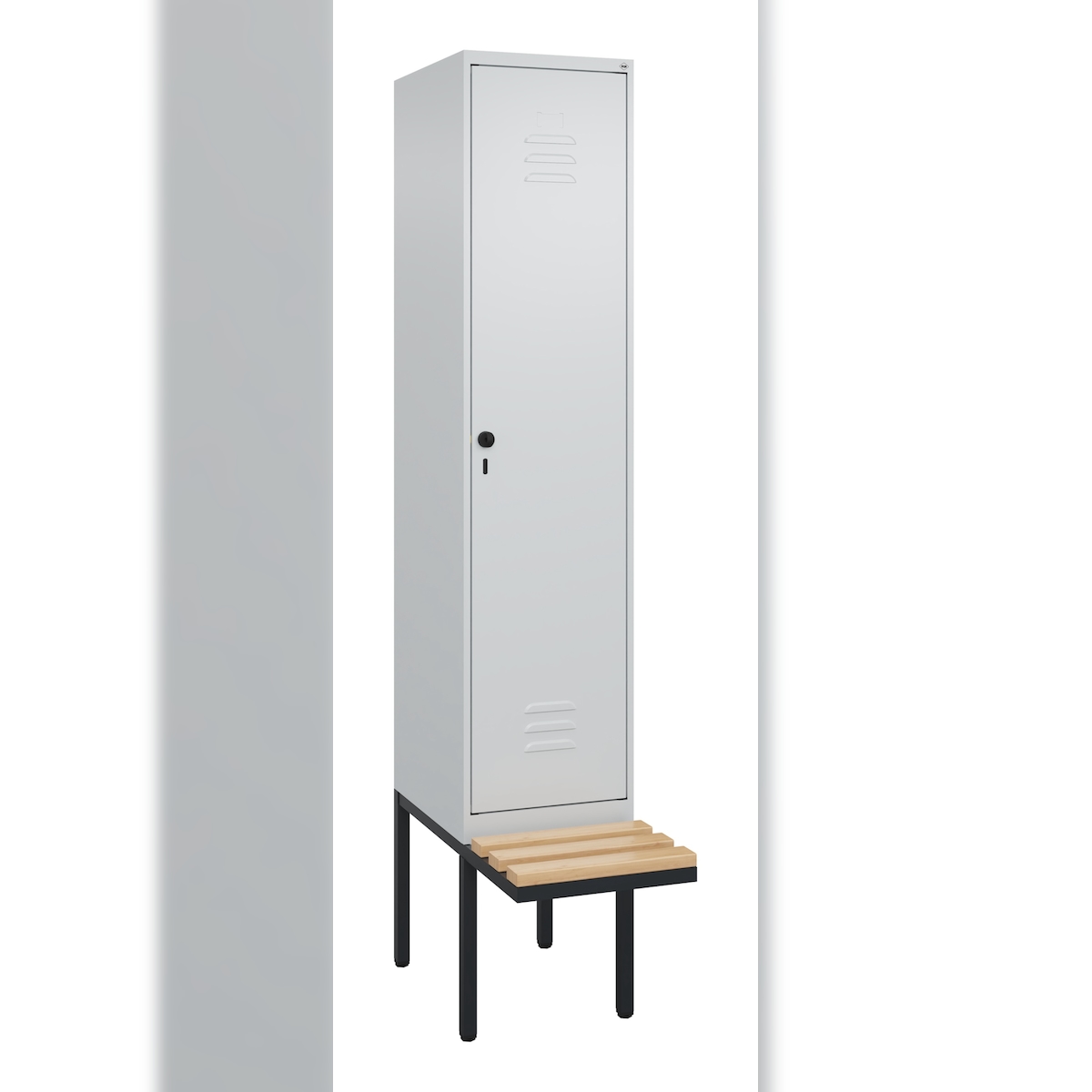 C+P Spind Classic PLUS, schwebender Sitzbank aus Buche 1 Abteil, HxBxT 212x40x82cm, Sicherheitsdrehriegel, Hellgrau/Hellgrau von PROREGAL