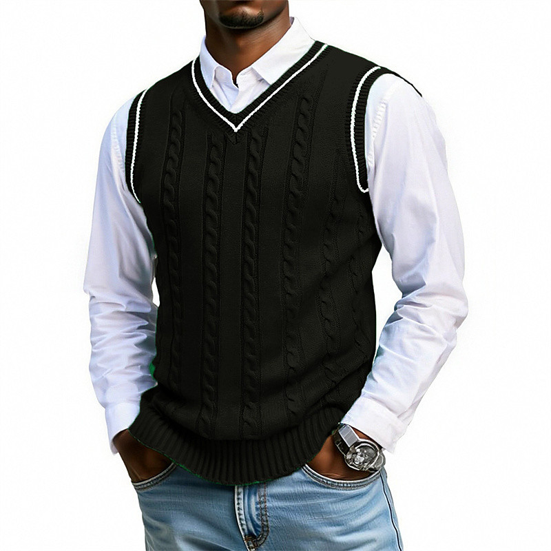 Men's Sweater Vest Dress Sweater Pullover Sweater Jumper Vest Knit Sweater Ribbed Knit Regular Tops Knitted Patchwork V Neck Fashion Streetwear Vacation Business Clothing Apparel Sleeveless Fall