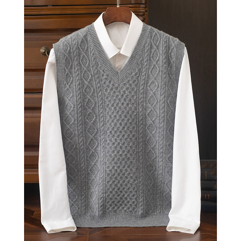Men's Sweater Vest Dress Sweater Pullover Sweater Jumper Vest Knit Sweater Ribbed Knit Regular Tops Knitted Plain V Neck Fashion Streetwear Business Vacation Clothing Apparel Sleeveless Fall Winter