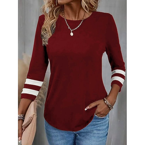 Per donna Maglietta Semplice Moda Moderno Casual Manica Lunga Girocollo Top Regolari Quotidiano Weekend Stampato Nero Vino Blu Marrone Grigio Primavera Autunno Inverno